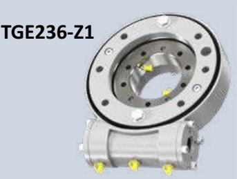 Napęd obrotowy TGE236-Z1 zintegrowany w korpusie, mieszczący ślimak i łożysko wieńcowe, odporny na warunki środowiskowe, idealny do dużych obciążeń osiowych i promieniowych.
